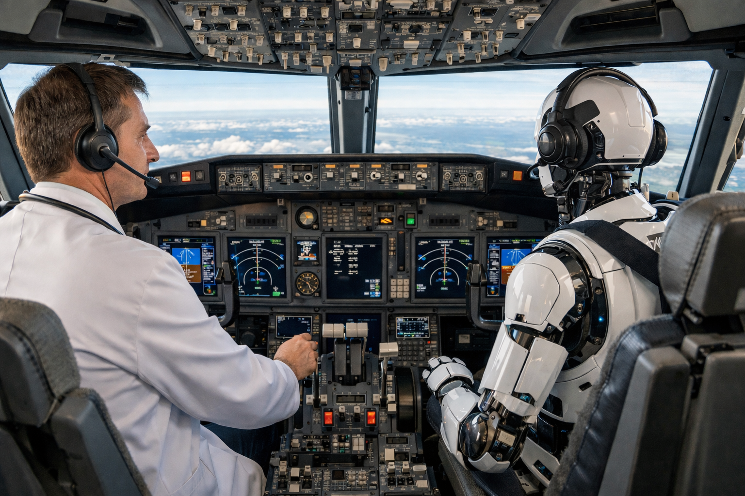 Image. A gauche le pilote, à droite le co-pilote.